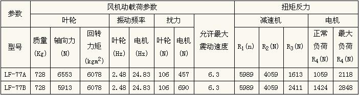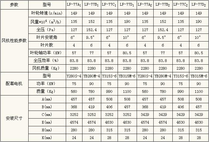 LF-77風(fēng)機(jī)性能參數(shù)一覽表